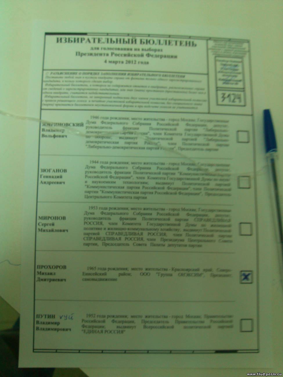 Значит нада пазвонить на избератильный участак и сказать, за каво нада прогалосовать. И паспартные данные прадиктавать.
