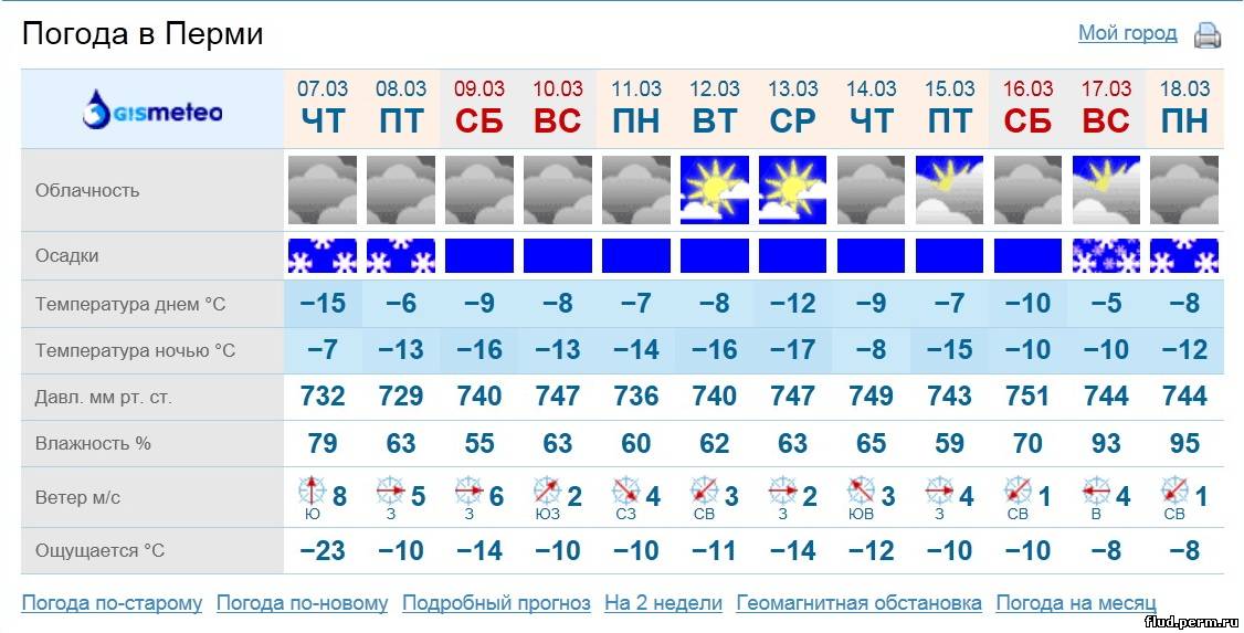Прогноз погоды по Пермскому краю с 21 ч. 7 марта до 21 ч 8 марта 2013 г.