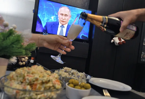 Президент России Владимир Путин выступил в Кремле с новогодним обращением к россиянам. Днем 31 декабря по московскому времени его показали в эфире российских телеканалов на Дальнем Востоке. По словам Путина, в минуты перед наступлением Нового года все «ощущают течение времени», поскольку «впереди будущее». Президент считает, что будущее зависит от самих россиян и их близких, которые «всегда готовы подставить плечо». | |
