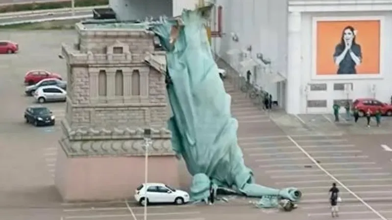 В Бразилии сильный ветер обрушил копию Статуи Свободы, об этом сообщил новостной портал G1. Инцидент, который произошел в муниципалитете Гуаиба в южноамериканской стране, сняли на видео. Памятник, имитирующий знаменитый монумент в США, упал на площади возле магазина Havan и ресторана McDonald’s. Порывы ветра в это время достигали 90 километров в час. Статуя получила сильные повреждения, рухнув с высоты. В результате происшествия никто не пострадал. | |
