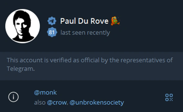 Мессенджер Telegram впервые выдал верификацию личному профилю. Ее получил основатель мессенджера Павел Дуров. Внимание на это обратило профильное издание «Код Дурова». В аккаунте Павла Дурова появился круглый значок, в центре которого стоит логотип Telegram. Он сопровождается меткой в профиле с подписью «Этот аккаунт подтвержден представителями Telegram». Однако издание уточняет, что, скорее всего, такая верификация аккаунтов будет проводиться только для сотрудников Telegram. «Код Дурова» уточняет, что Telegram не выдает напрямую значки верификации для личных аккаунтов. Однако с начала года можно получить верификацию от сторонних организаций, в том числе для личного аккаунта. | |